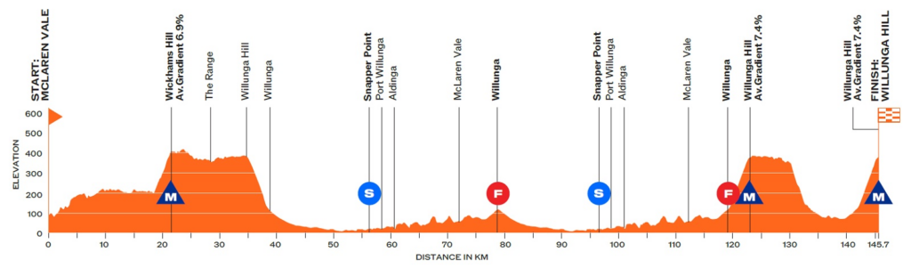 5ª. Sábado 25 enero: McLaren Vale (1:44)-Willunga Hill (5:20), 145,7 kms