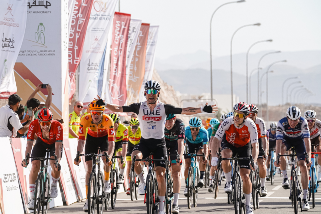 La ambición del equipo UAE encontró su recompensa en la 4ª etapa del Tour de Omán que terminó cayendo de lado de la estructura de los emiratos después de luchar mucho por una victoria que se les hacía de rogar. Primero lo intentaron con Pascal Ackermann atacando a 7 kilómetros de meta en un terreno impropio para alguien con las características del esprínter alemán. Su ataque en una zona de descenso sorprendió al grupo y le permitió abrir unos segundos muy valiosos. El problema que se encontró fue la excesiva dureza de las rampas en el tramo final que como era de esperar le dejaron sin opciones. El órdago estaba lanzado y no había salido bien. Pero el equipo UAE siempre tiene una última bala en la recámara.