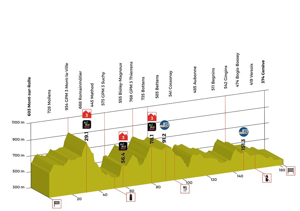 Andrey Amador, por fin Hugh Carthy, de nuevo Thomas De Gendt, el recuperado Mikel Nieve y la sorpresa Hermann Pernsteiner aprovecharon el primer puerto para marcharse y lograr 3 minutos de ventaja. A 60 kilómetros del final saltaron atrás el colombiano Daniel Martínez y el alemán Emmanuel Buchmann al que se añadió Ion Izagirre, que recogieron a los fugados Pernsteiner y De Gendt.