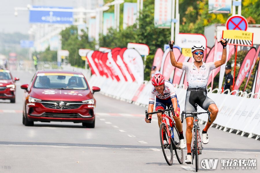 El neerlandés Meijers celebra la victoria por delante de Sobal © Tour of China