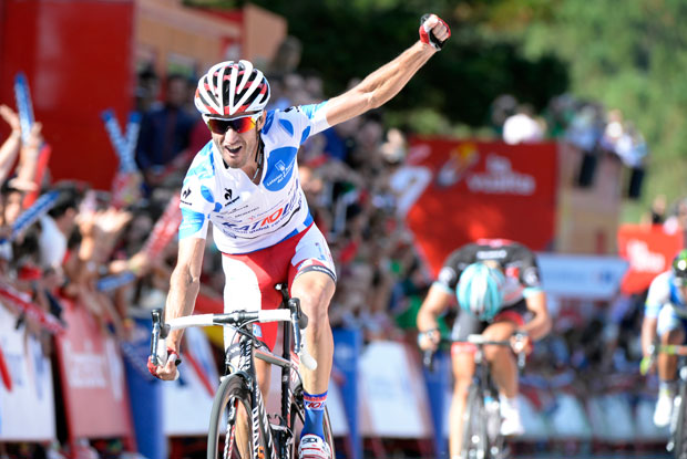 Casi en el precipicio, en el abismo, en el fin de la tierra, del Mundo, en Fisterra en galego y en Finisterre en castellano, llegó, por fin una nueva victoria española en una gran vuelta, tras la del Giro de Intxausti y un yermo Tour de Francia. Y ha tenido que ser uno de los principales arietes del momento. Un escudero venido a más. Dani Moreno (5 junio 1981, Madrid), ya segundo en el Alto do Monte da Groba, no perdonó en la última meta gallega, en el fin del camino de muchos peregrinos que alargan su llegada a Santiago. Con permiso siempre de su jefe y amigo Purito, y en un terreno ideal para su ergonomía, Moreno soltó su estacazo en el kilómetro final, superó al siempre combativo Juan Antonio Flecha y ya nadie pudo con él. Ni tan siquiera el arreón poderoso de Fabian Cancellara fue capaz de alcanzar al último ganador de La Flecha Valona. Un Moreno que ya tiene dos etapas en la Vuelta y que a sus 31 años sigue puliendo su palmarés, al estilo de su compañero de habitación.