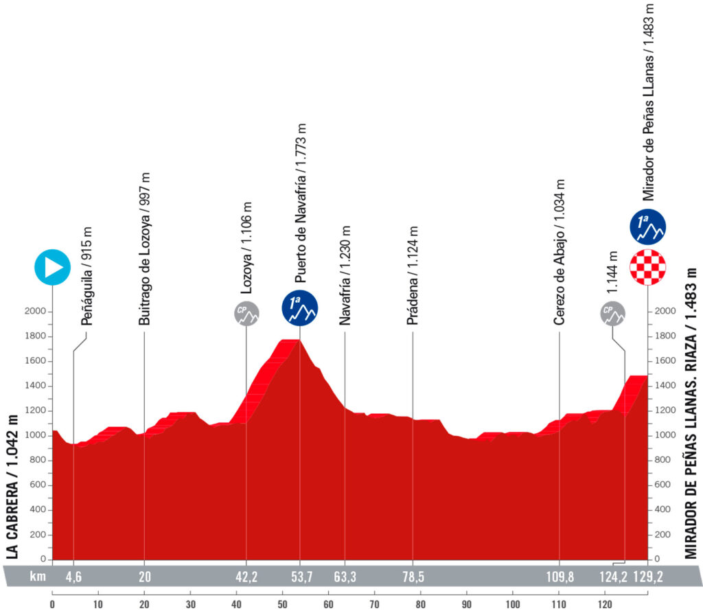 Después de estas cuatro primeras etapas la verdadera montaña llegará este viernes en la 5ª etapa que unirá el municipio madrileño de La Cabrera y el final en primer final en alto de la carrera en el Mirador de Peñas Llanas (2ª categoría), en Riaza. Será una jornada de 129,2 kilómetros donde también se superará el Puerto de Navafría (1ª categoría) que se espera que empezará a definir la clasificación general.