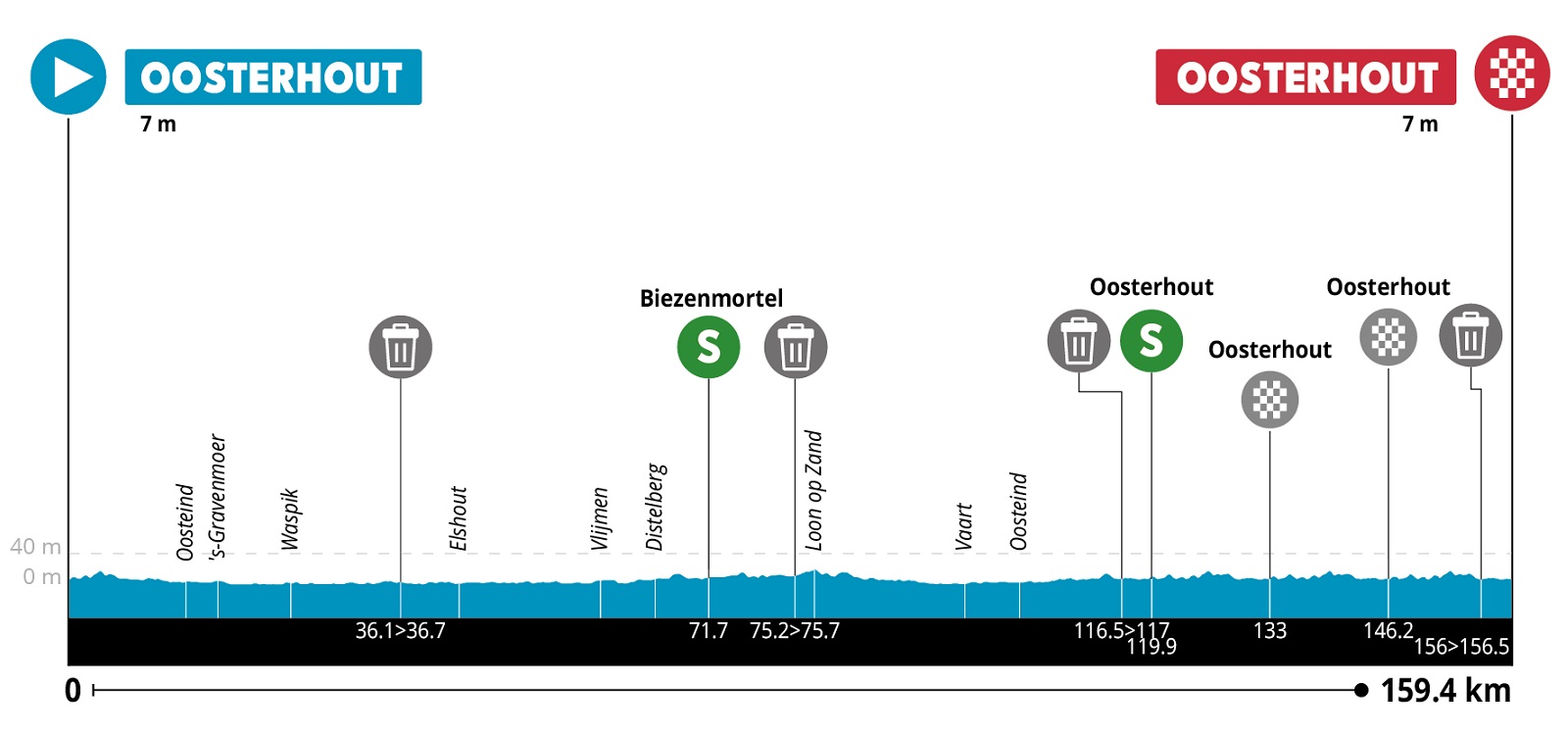 5ª: Domingo 9 junio. Oosterhout (12:40)-Oosterhout (16:05), 159,8 kms