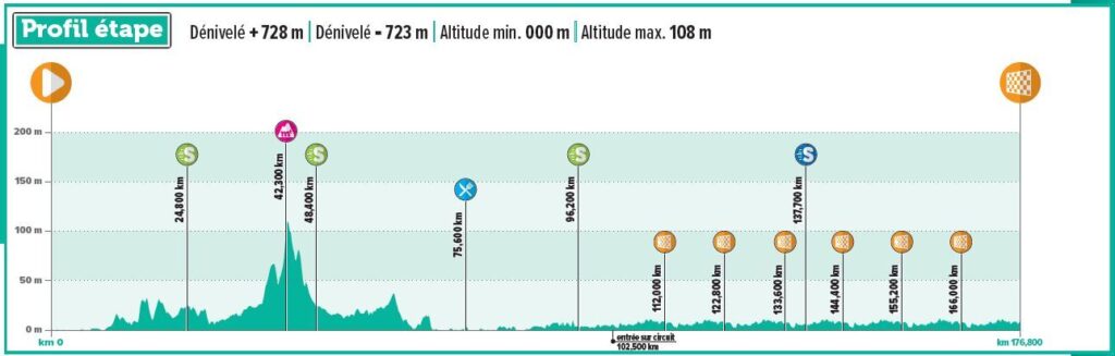 Fausto Masnada (Soudal), Jeremy Lecroq (St Michel) y Enzo Leijnse (DSM) fueron los primeros atacantes perseguidos por Rait Ärm (Van Rysel), Gwen Leclainche (Philippe Wagner) y Enzo Boulet (CIC U Nantes Atlantique). Un trío de puente que fue atrapado a 112 kilómetros del final mientras Masnada se fue de sus compañeros a 70 kilómetros de meta mientras el pelotón ya estaba a menos de 3 minutos. Israel se encargó de atrapar a Leijnse y Lecroq a 47 kilómetros y 12 después ya Masnada.