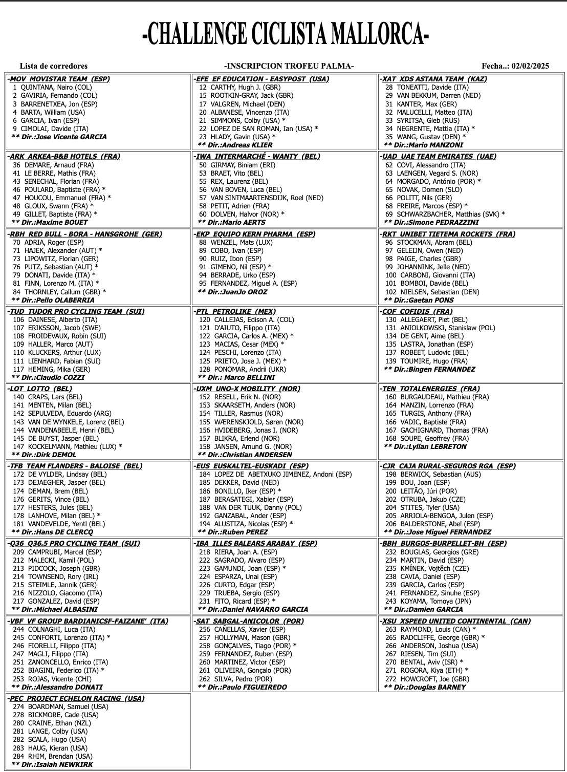 Domingo 2 febrero. Trofeo Palma: Palma-Palma, 149.9 km / RUTÓMETRO