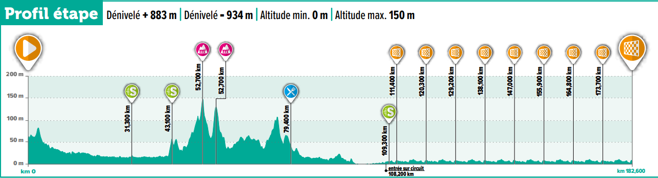 Las hasta 16 subidas presentes en el bucle de Cassel no propiciaron muchos movimientos, más allá del protagonizado por Valentin Retailleau (AG2R) y Loic Vliegen (Intermarché). Ambos lo probaron a 15 kilómetros de meta, pero fueron neutralizados por el gran grupo antes del ascenso final hasta la meta. Previamente había rodado por delante una fuga de siete ciclistas compuesta por Kevin Kuhn y Boy Van Poppel (Intermarché), Alex Colman (Flanders), Niklas Larsen (Uno-X), Norman Vahtra y Kenny Molly (Roubaix Lille); y Nicolas Debeaumarché (St. Michel), siendo este el que más aguantó en cabeza, hasta poco más de una vuelta para la conclusión.