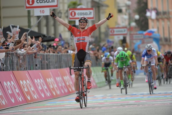 Ni Arnaud Démare (FDJ) ni Sonny Colbrelli (Bardiani-CSF), los dos corredores que más cerca se quedaron del insuperable alemán volador, pudieron hacer nada por evitar el guión soñado por el hombre rápido del Lotto-Soudal después de una etapa en la que el pelotón volvió a jugar de forma excesivamente peligrosa con la fuga del día. Una escapada que una vez más tuvo presencia española ya que junto a Daniel Oss (BMC), Alexander Foliforov (Gazprom-RusVelo), Pavel Brutt (Tinkoff) y se marchó Amets Txurruka (Orica-GreenEdge) para protagonizar la aventura más larga de lo que llevamos de Giro de Italia.
