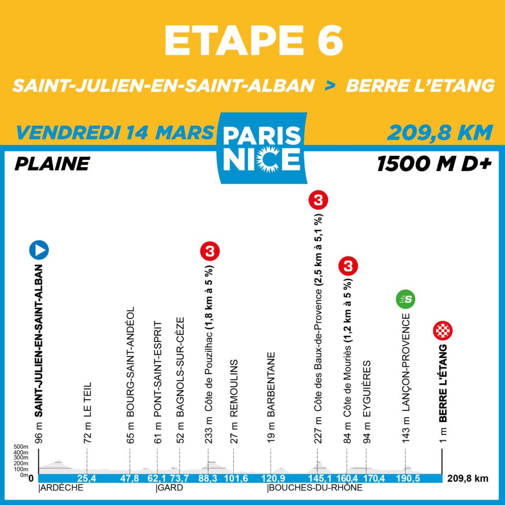 6ª: Viernes 14 marzo. Saint-Julien En Saint Alban (11:35)-Berre L’Etang (16:25), 209,8 km