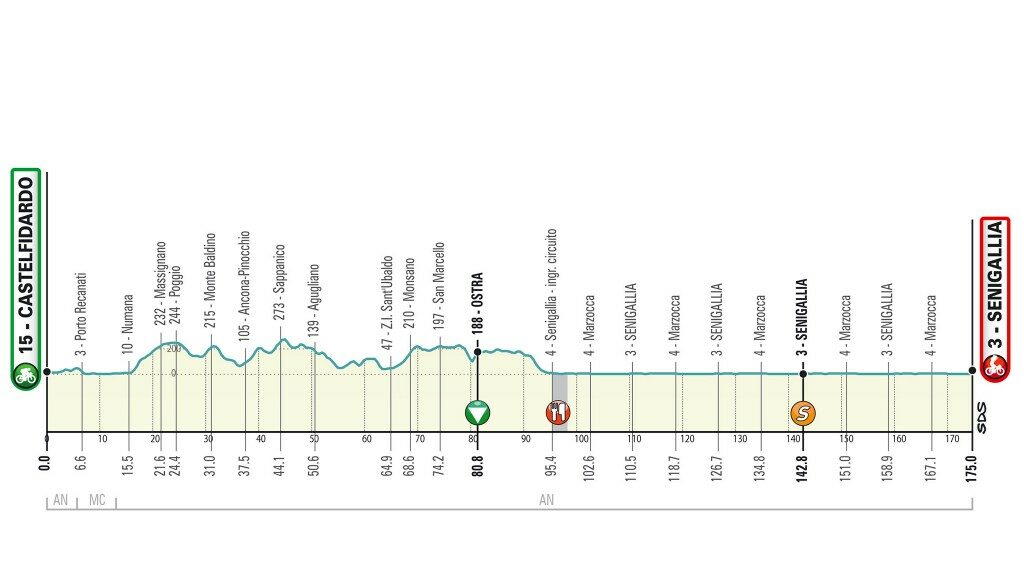EF y Mitchelton fueron los encargados de reducir las diferencias. Por eso Bernard se animó a atacar respondido en primer instancia por Amanuel Gebreigzabhier, y después por Frank, Van der Poel y Visconti, pero a menos de 10 kilómetros volvieron al grupo. La etapa recomenzó con intentos de Rui Costa (UAE) y Luca Wackermann (Zabù) sin éxito. Óscar Rodríguez (Astana) se puso a trabajar para Vlasov antes de los ataques estériles de Vincenzo Nibali. Majka selección el grupo quedándose con Woods, Simon Yates, Geraint Thomas, Gianluca Brambilla, Fausto Masnada, Alexander Vlasov, Wilco Kelderman y James Knox. A 4.500 metros del final Yates asestó su golpe dejando en crisis a Woods. Majka, Vlasov, Masnada y Thomas no lo dudaron y abandonaron al norteamericano que acabó en meta a 1:46. Ahora Yates manda con 16″ sobre Majka y 39 sobre Thomas ante una sexta etapa llana.