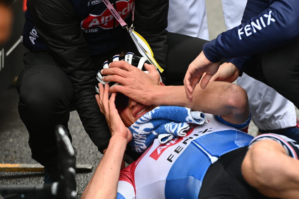 Y casi le pasa con el líder del Alpecin que vio como sus 3 minutos de ventaja casi los pierde a manos de un Pogačar sin cadena y que vio perfectamente el sufrimiento de sus colegas para irse en solitario y casi ver el tubular trasero del a la postre exhausto vencedor parcial. Van der Poel tuvo que echar manos de sus geles y su calidad para administar sus fuerzas y de esta forma engrosar un poco más su variada y extensa lista de polivalentes victorias, quizás la más complicada de su carrera.