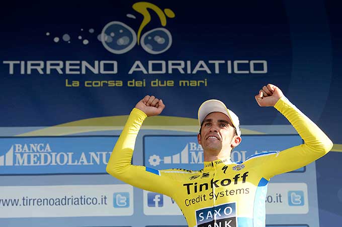 Alberto Contador volvió a mostrar hoy su mejor versión dando toda una demostración de fuerza y calidad en la quinta etapa de la Tirreno-Adriático, donde no solo se alzó con el triunfo de etapa –segundo consecutivo–, sino que también se vistió con el maillot de líder a falta de solo dos jornadas para el final, dejando la carrera casi sentenciada ya que, salvo catástrofe o enorme sorpresa, se antoja imposible que Nairo Quintana, que se ha colocado segundo en la general, pueda recuperar los más de dos minutos con los que ahora le aventaja el español y máxime teniendo en cuenta que ni mañana, en una etapa completamente llana e ideal para los sprinters, ni el último día, con esa crono de apenas 10 kilómetros, parece haber terreno suficiente para intentar algo.