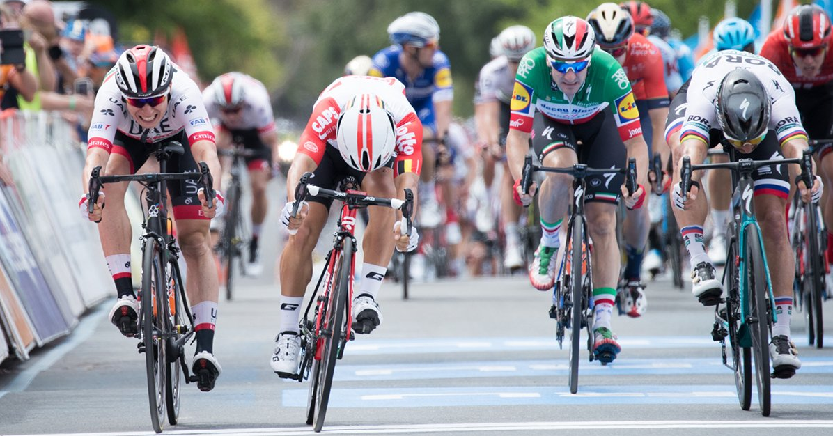 Sorprendente éxito del joven belga Jasper Philipsen en la quinta etapa del Tour Down Under 2019. El velocista del UAE se permitió el lujo de sobrepasar en meta nada menos que a Peter Sagan (BORA hansgrohe) al final de la quinta etapa entre Glenelg y Strathalbyn, gracias a la suspensión del australiano Caleb Ewan (Lotto Soudal) que había sido el primero en atravesar la línea de llegada primera posición. El tercer lugar fue para Danny Van Poppel (Jumbo Visma) por delante de Jens Debusschere (Katusha Alpecin) y Elia Viviani (Deceuninck Quick Step). A falta de la etapa final con el decisivo Willunga Hill, el liderato sigue siendo para el neozelandés de Patrick Bevin (CCC) un día más, a pesar de que sufrió una fuerte caída a diez kilómetros de acabar la etapa y al término de la misma fue trasladado al hospital para realizar pruebas aunque no peligra su continuidad. El murciano Luis León Sánchez, tercero en la general a 16″, mantiene intactas sus opciones de poder alcanzar la victoria.