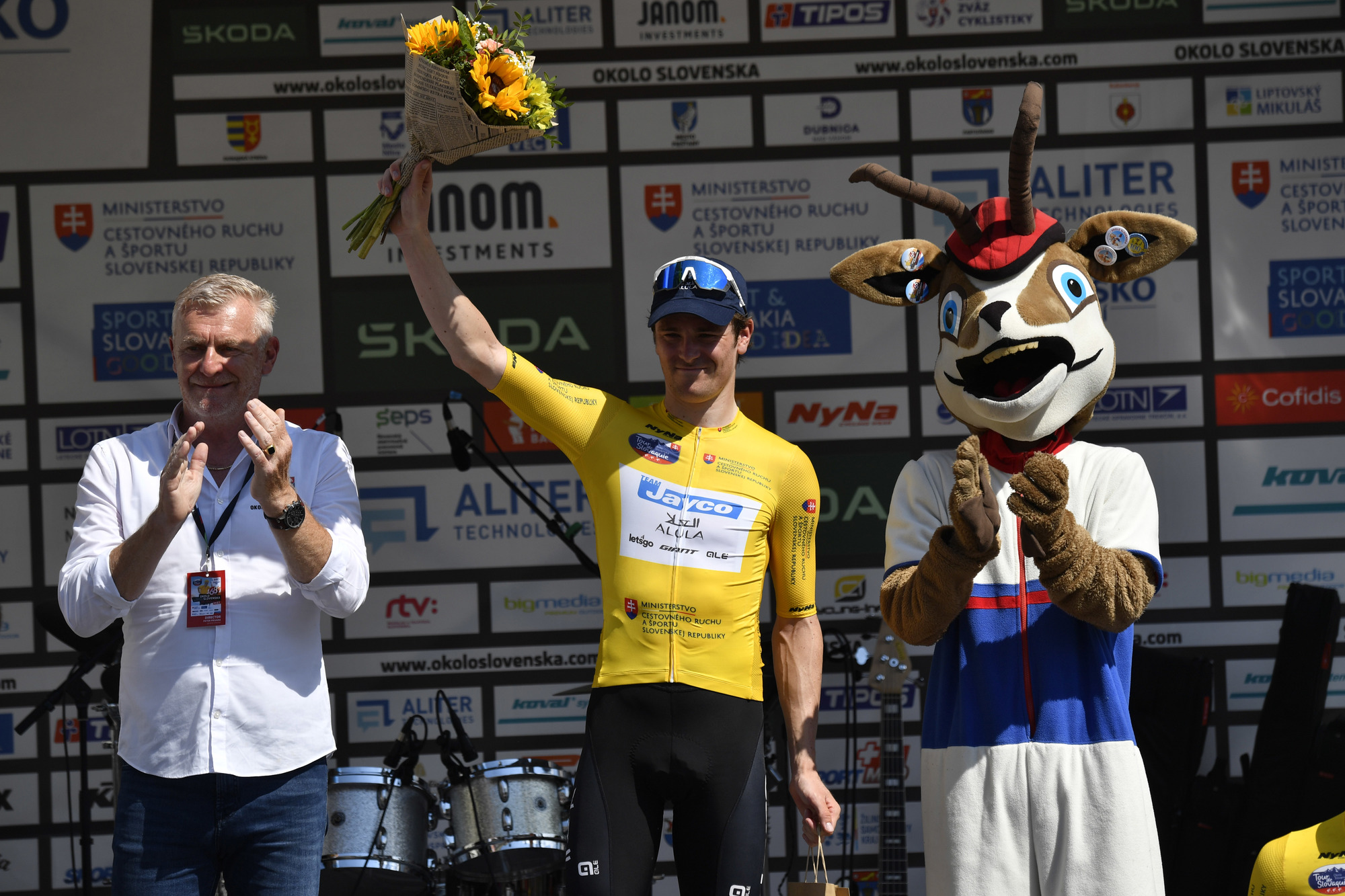 Mauro Schmid se proclamó campeón del Tour de Eslovaquia, sucediendo a su excompañero Remi Cavagna en el palmarés y derrotando al también ciclista del Soudal Quick-Step, Julian Alaphilippe. El francés fue el mayor rival del corredor del Jayco AlUla en la subida final a Štrbské Pleso, pero no logró distanciarse e incluso perdió ante él en el sprint por la segunda posición. En el kilómetro final del tercer y último ascenso a este puerto sí logró abrir un pequeño hueco Felix Engelhardt para hacerse con la victoria y lograr el doblete para el equipo australiano, que se llevó tanto la última etapa, como la general. El suizo logró acabar también en el tercer escalón del podio final, desplazando a su compañero Anders Foldager, que llegó a liderar la carrera dos días antes.