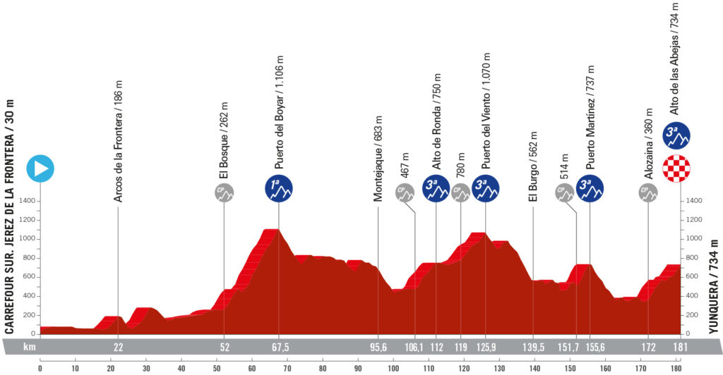 6ª: Jueves 22 agosto. Jerez de la Frontera (Cádiz) (12:59)-Yunquera (Málaga) (17:30), 181 kms