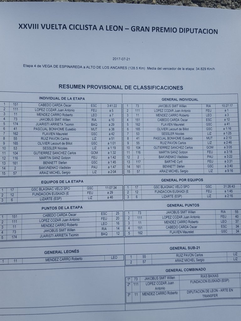CLASIFICACIÓN DE LA 4ª ETAPA