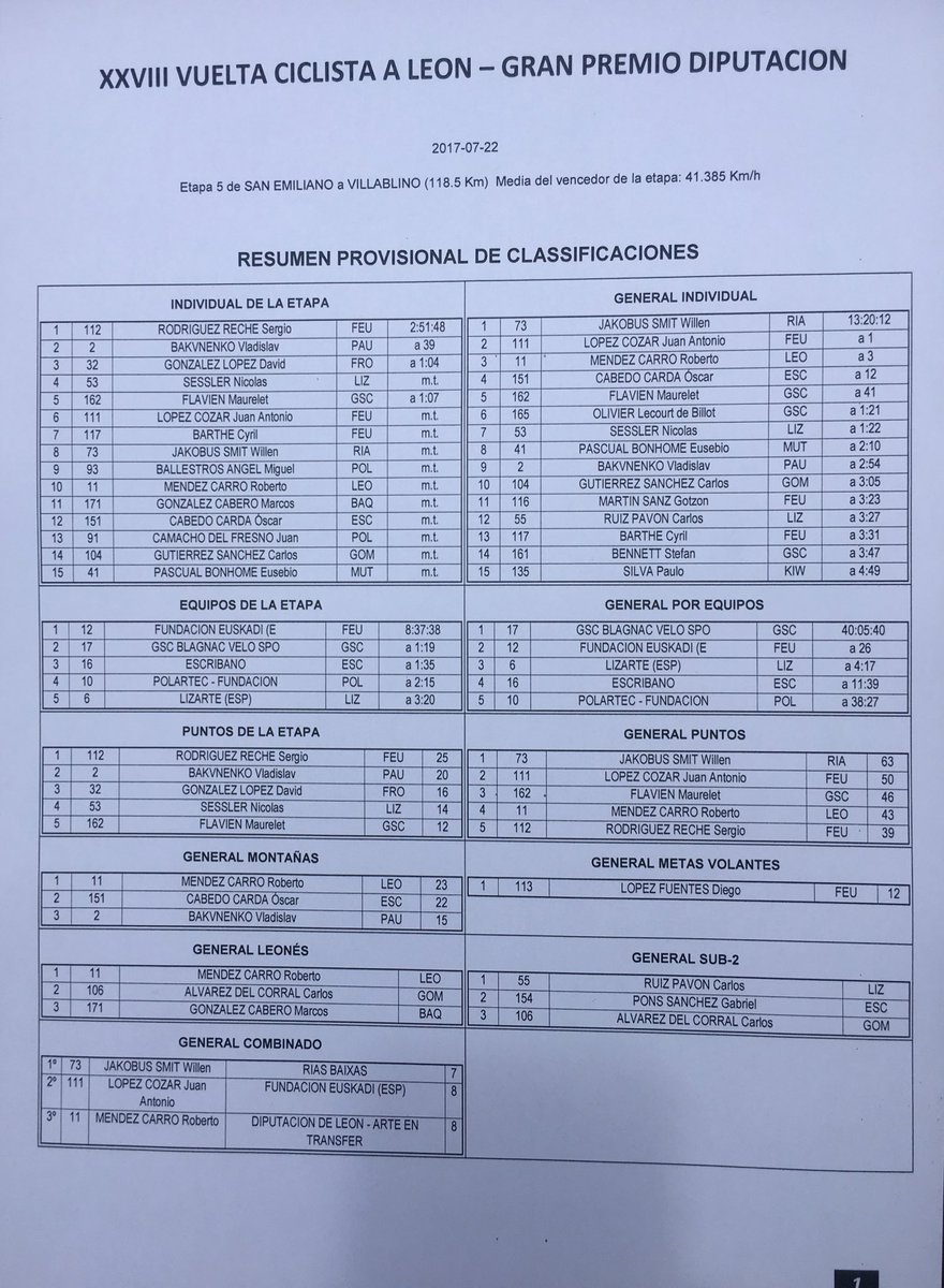 El campeón de España elite, Sergio Rodríguez -que no portaba el maillot-, del Fundación Euskadi, se ha impuesto en la quinta y última etapa de la Vuelta a León elite y sub-23 en la que en la general se la ha llevado el sudafricano Willie Smit, del Rias Baixas.
