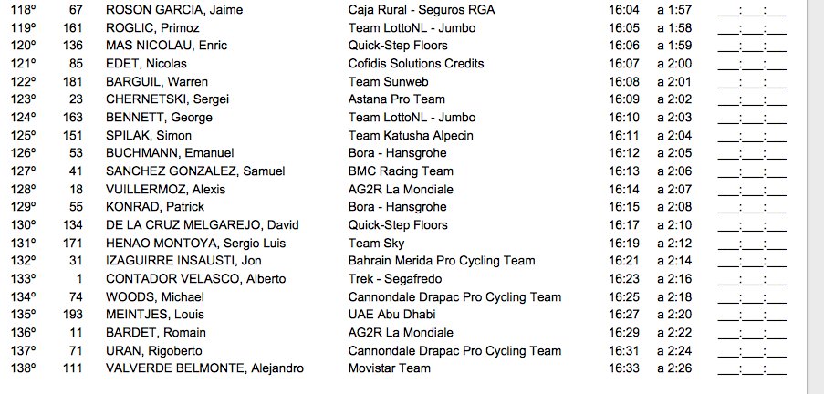 | 30 | Gorka IZAGIRRE INSAUSTI | ESP | MOV | 30 | +1:55 |