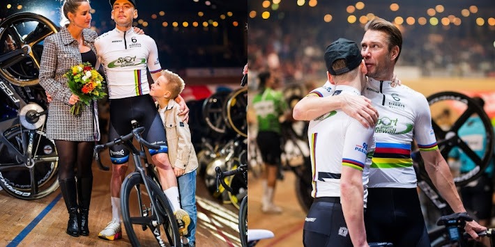 El clímax emocional de la velada había llegado una hora antes, cuando fue despedido con una ovación de pie del público. El ciclista de 34 años dio la vuelta de honor con su hijo Pepe y atravesó el pasillo que le hicieron sus compañeros. “Una despedida así no se puede comprar. Locura. “¡Gracias Berlín!”, dijo Reinhardt entre lágrimas. Valts Miltovics, director general de la empresa organizadora Madison Sports GmbH, entregó a Reinhardt una placa conmemorativa realizada con madera original del velódromo, cuya pista fue renovada en 2017 con la leyenda“Te extrañaremos y te deseamos todo lo mejor”.