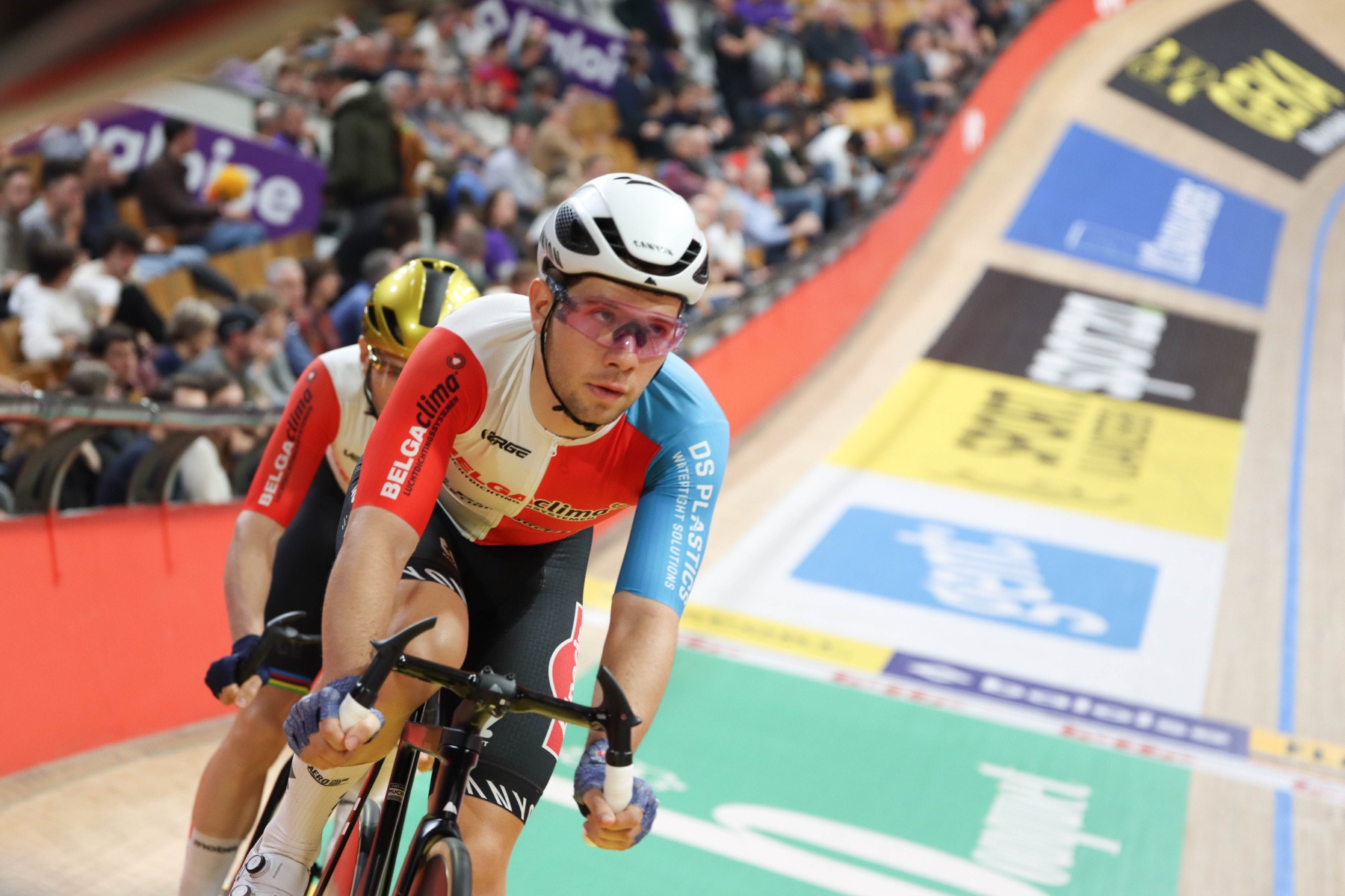 De Vylder y Ghys estaban dispuestos a todo, y en la primera madison de la noche también se llevaron la victoria, por delante de Thomas-Van den Bossche, en una ‘chase’ que resultó muy competida y en la que sólo siete parejas aguantaron en vuelta.