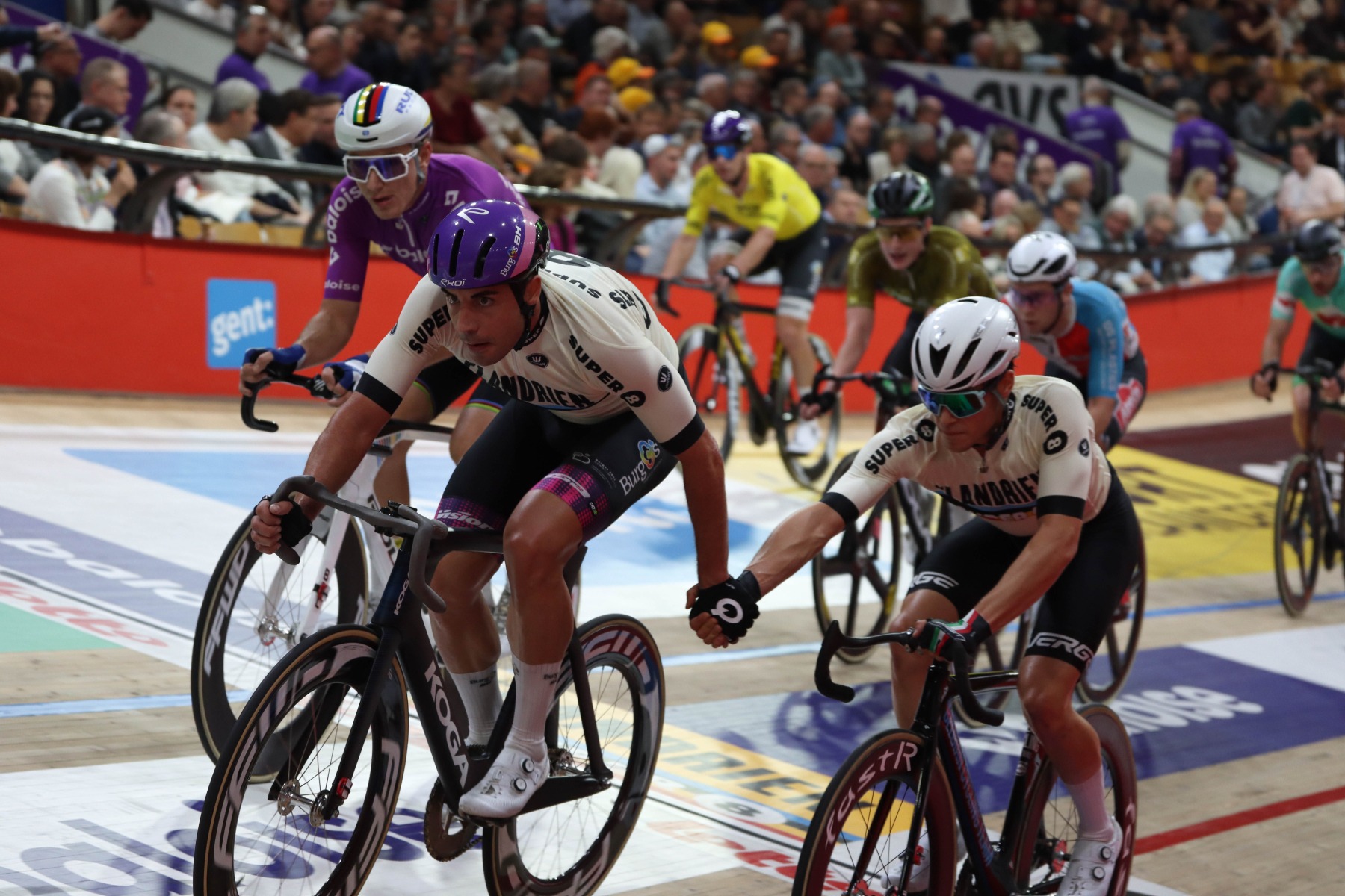 La noche terminó con el dominio de Noah Vandenbranden y Gianluca Pollefliet, los mejores sin duda en las pruebas cronometradas. En la primera parte de la sesión habían ganado la vuelta lanzada (8.459) , para obtener un nuevo triunfo en los 500 metros, con 27.064, el segundo mejor tiempo de la historia en el Kuipke. Más inesperada fue su victoria en la ‘chase’ final, en la que, como los dos días precedentes, no hubo movimiento respecto a las primeras posiciones.