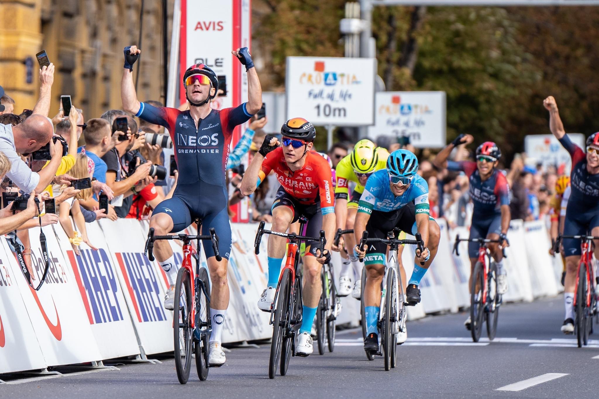 Fue a falta de unos diez kilómetros, cuando se entraba en Zagreb, cuando los fugados eran cazados por el gran grupo. Ineos se puso al frente del grupo para llevar en volandas a Elia Viviani, el mejor velocista de la carrera, pero Jonathan Milan hizo un trabajo perfecto para su compañero Mohoric, llevándolo siempre bien colocado y dejándolo todo a punto en los últimos metros.