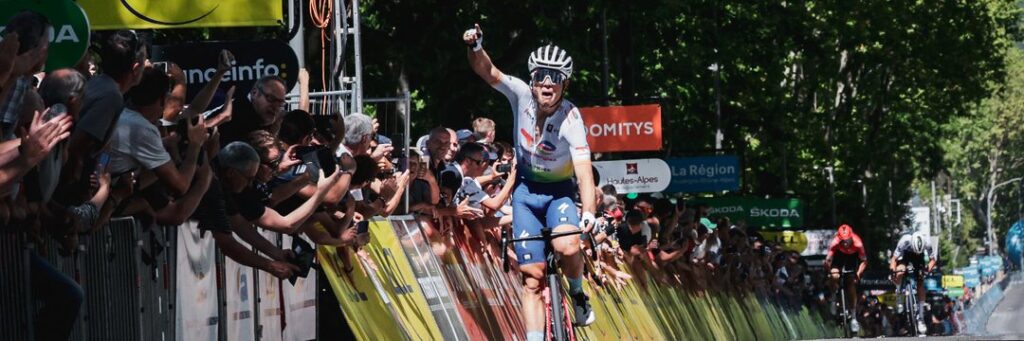 La etapa previa a la alta montaña no marcó diferencias importantes pero seguro que dejará huella en las piernas de los corredores. Una fuga completamente francesa y con corredores de nivel fue la protagonista del día. Formada por Bagioli, Barguil, Bouchard, Ferrond, Lafay y Rolland se jugaron la etapa tras permitirles el pelotón disputarse el triunfo. Jumbo dejó de lado sus funciones al frente del pelotón y tuvo que ser Trek el equipo que pusiera el ritmo en el pelotón. Si querían o no la etapa es una incógnita. Desde luego, no fueron capaces de alcanzar a los seis fugados que se jugarían la victoria al esprint. O eso parecía. Valentin Ferrron sabía que había mucho gallo en la escapada y que sus opciones de triunfo se reducían considerablemente si llegaba junto a ellos.