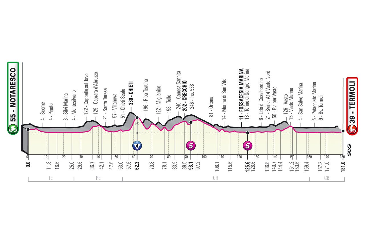 Sin Mikel Landa, Joe Dombrowski, Pavel Sivakov y François Bidard, todos ellos víctimas del caótico y peligroso final de la quinta etapa en Cattolica, el pelotón inició una nueva etapa en este Giro de Italia con la clara intención de muchos motivados para coger la escapada del día. Sin embargo, a diferencia de ayer, el pelotón no tenía la intención de dar espacio a los fugados.