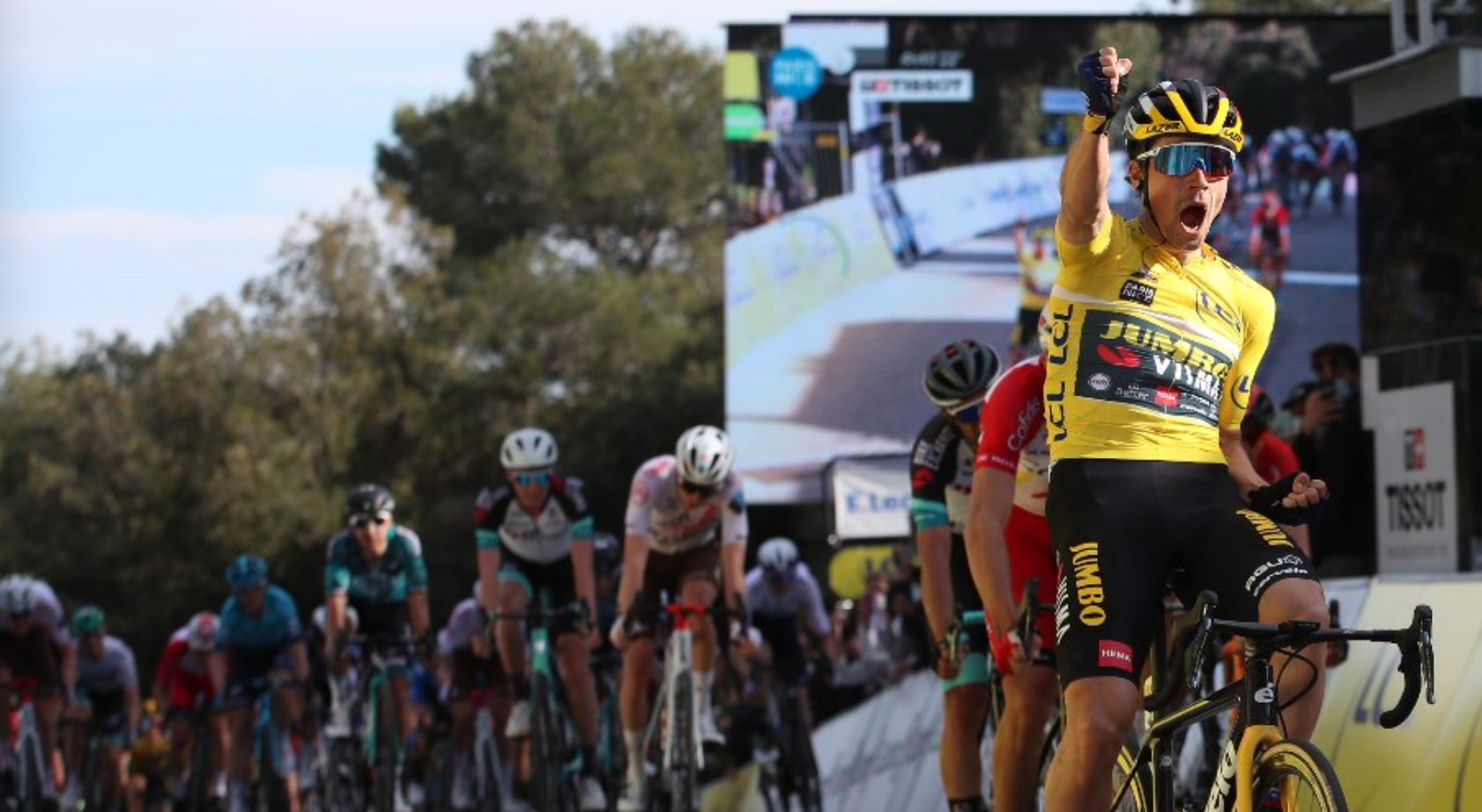 Sin piedad. Esa es la actitud de Primoz Roglič en la París-Niza. Es el líder y vestido de amarillo ha ganado su segunda etapa en la empinada llegada de Biot donde los velocistas quedaron descartados. El esloveno del Jumbo neerlandés esperó pacientemente su momento en el kilómetro final para jugar su cartas y superar al francés Laporte y al australiano Matthews y lucirse ante su mujer y su hijo, presentes en meta, con un grito de rabia y alegría combinadas.