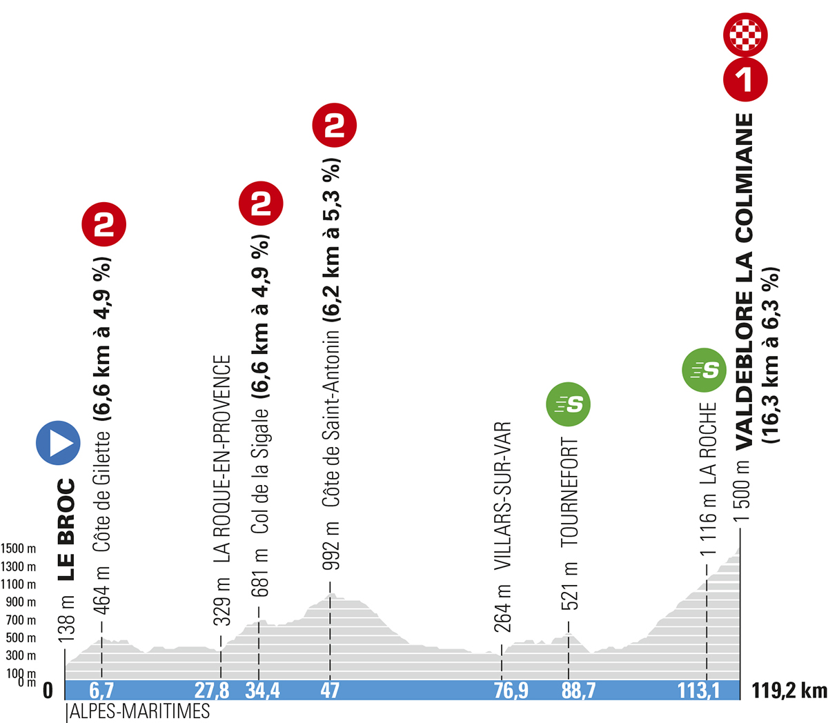 El nuevo perfil de la 7ª etapa. Sábado 13 marzo. LeBroc-Valdeblore La Colmiane, 119,2  kms