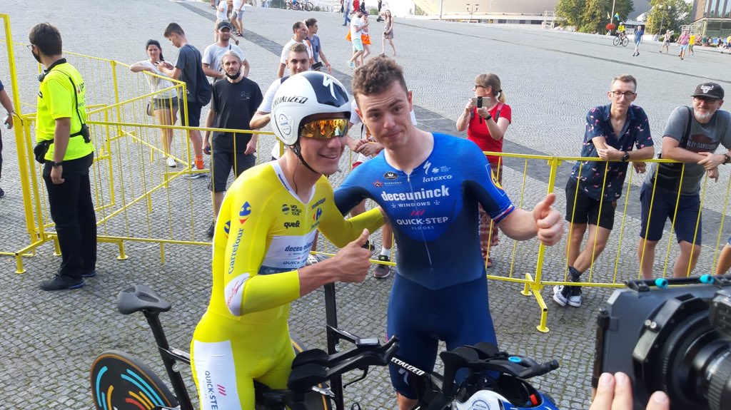 El galo, oro en fondo en carretera de su país, aventajó en 13 segundos a su compañero de equipo, el portugués y más líder Joao Almeida y en 16 al local Maciej Bodnar (Bora). Otra victoria para el conjunto belga después del doblete de Remco Evenepoel en Dinamarca.