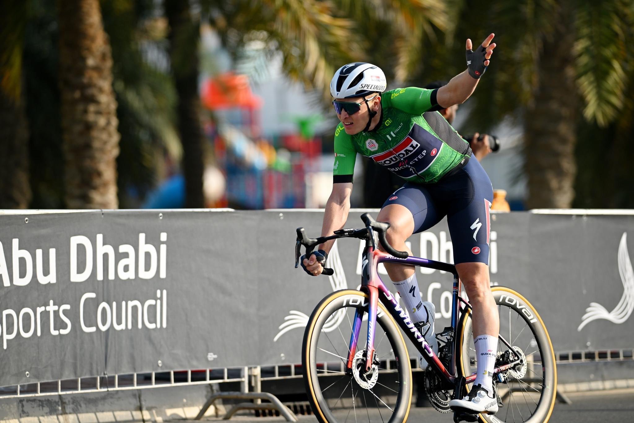A falta de Philipsen, que está compitiendo en el Opening Weekend en Bélgica, el UAE Tour ha puesto sobre la mesa la sensación de que Tim Merlier puede ser el sprinter dominador de la temporada. En la carrera ha habido cuatro llegadas masivas y el belga de Soudal ha ganado tres y en otra fue segundo haciendo el sprint final con la rueda trasera pinchada. Su dominio en la ronda emiratí está siendo más que evidente y este sábado ha ganacon con autoridad, e incluso, con cierta suficiencia, pudiendo celebrar el triunfo antes de cruzar la línea de meta.