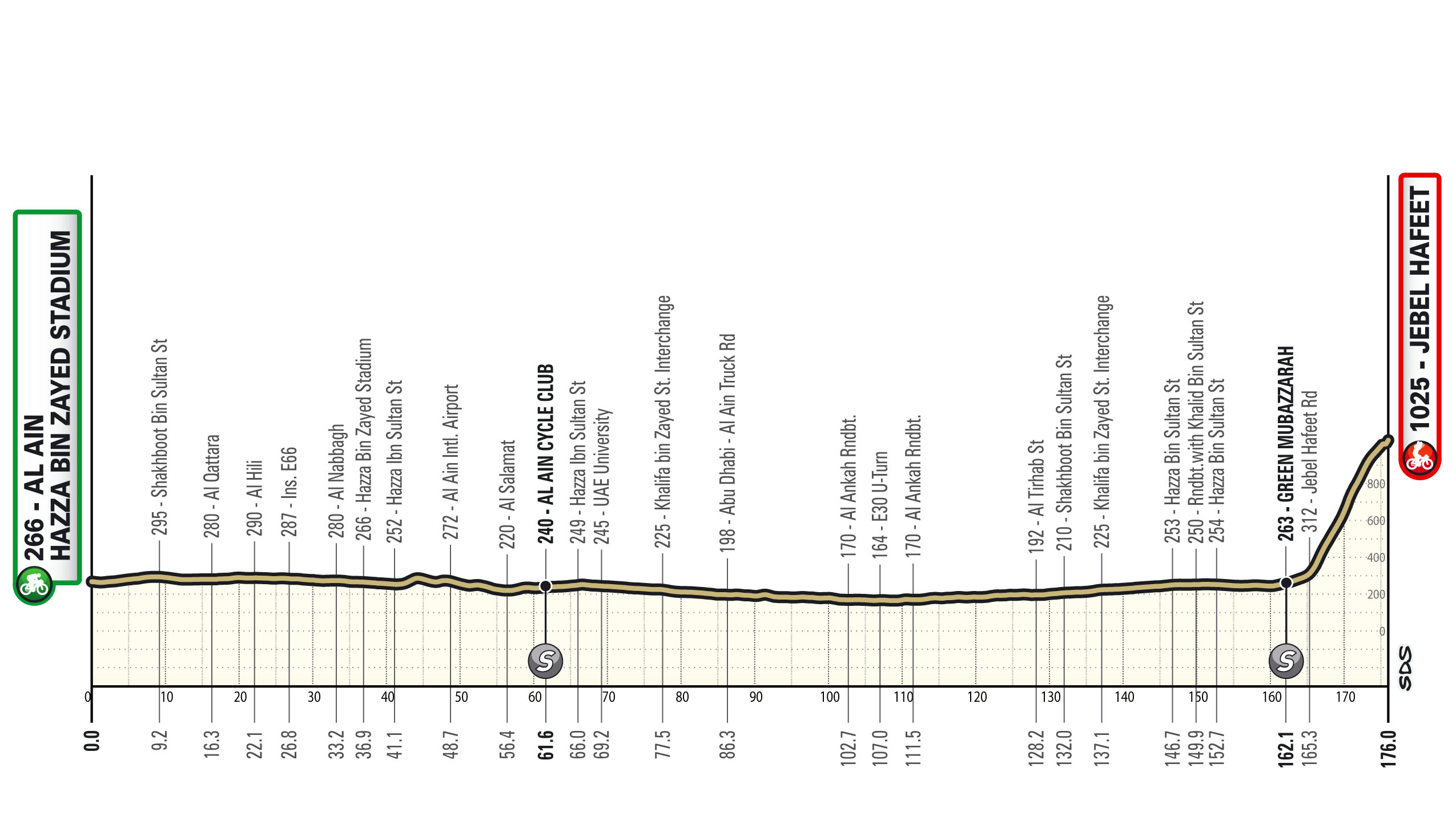 7ª: Domingo 23 febrero. Estadio Al Ain Hazza Bin Zayed (9:15)-Jebel Hafeet (13:30), 176 km