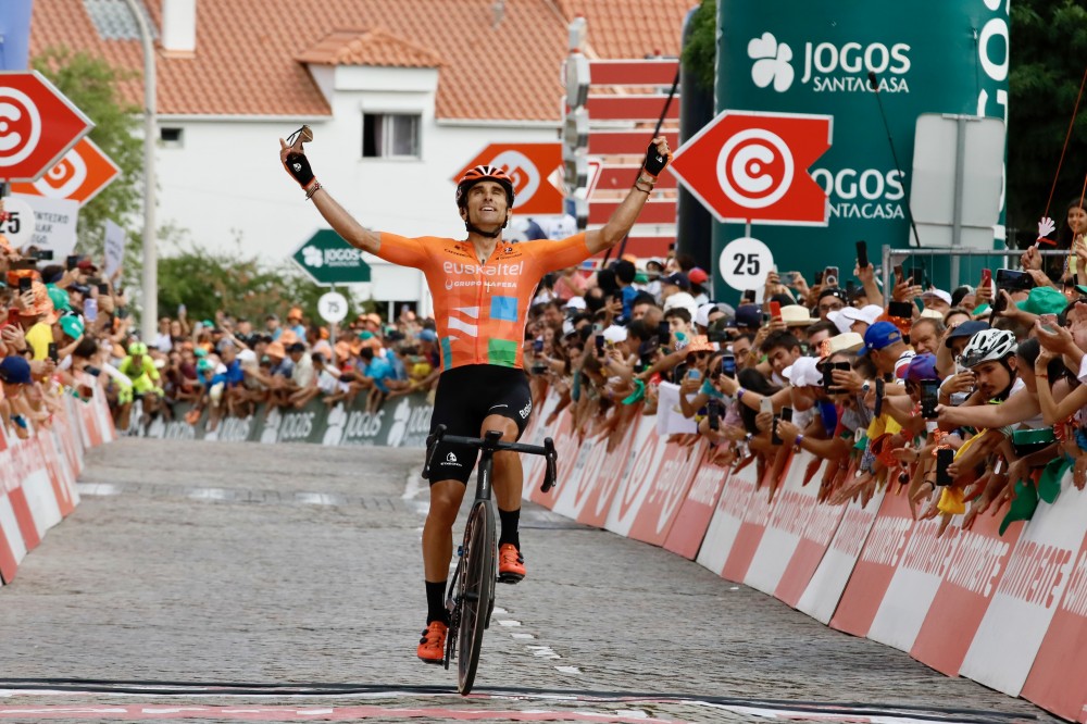 Luis Ángel Maté: «Estoy muy contento porque llevaba mucho tiempo sin ganar. Para mí, esta victoria es muy importante. La Vuelta a Portugal es una carrera a la que he tenido muchas ganas siempre. Por circunstancias, no había podido venir nunca. Ese año con solo estar aquí estaba disfrutando muchísimo del país, del público, del recorrido, de todo… Conseguir una victoria es un premio extraordinario. La verdad es que estoy exultante. Además, el equipo está funcionando de una manera espectacular, del primero al último. Tenemos una condición buenísima y un ambiente perfecto. Y el grupo es maravilloso. Estoy muy contento. También me ha hecho mucha ilusión ver muchas camisetas naranjas y muchas ikurriñas por el recorrido. Mañana, a descansar y a seguir en las últimas cuatro etapas que quedan en la línea que estamos que es extraordinaria. La clasificación está apretada y queda mucha montaña. Estoy muy feliz de disputar mi primera Grandissima y de haber podido conseguir ganar. Estoy muy contento con la victoria porque, además, Guarda es una ciudad muy especial para mí. La etapa ha sido muy difícil de interpretar porque nadie esperaba que el Glassdrive fallara ayer. Hoy han hecho una etapa muy dura. Y el final era muy difícil. Artem (Nych) estaba muy fuerte, él luchaba por el liderato, por el maillot amarillo, y por la victoria. Yo tenía buenas sensaciones, me sentía fuerte, pero he querido esperar a los últimos 150 metros que eran los más complicados. Estoy muy satisfecho».
