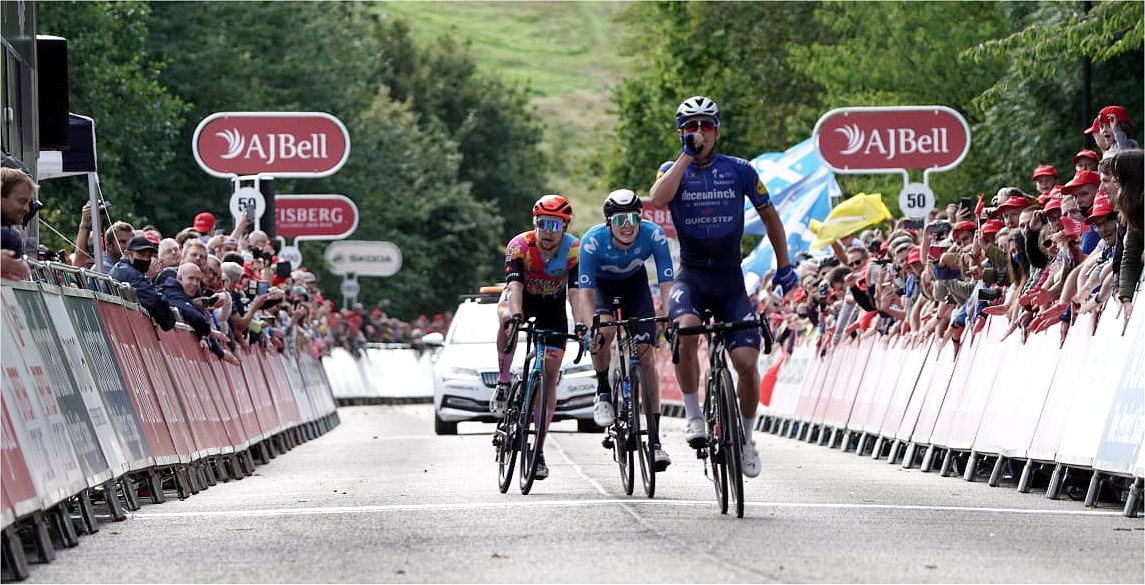 Deceuninck suma y sigue con su victoria 55ª en lo que va de 2021. La última la firma el mejor de los componentes de la fuga en la 7ª etapa del Tour de Britain (Gran Bretaña) de categoría 2.Pro UCI, Yves Lampaert. El belga superó a Matteo Jorgenson (Movistar) y Matthew Gibson (Ribble Weldtite) con una ventaja de casi dos minutos sobre un pelotón en el que Ethan Hayter (Ineos) mantiene el maillot azul de líder con 4′ segundos de diferencia sobre Wout Van Aert (Jumbo) y 21» sobre Julian Alaphilippe (Deceuninck) a falta de la jornada definitiva dominical-