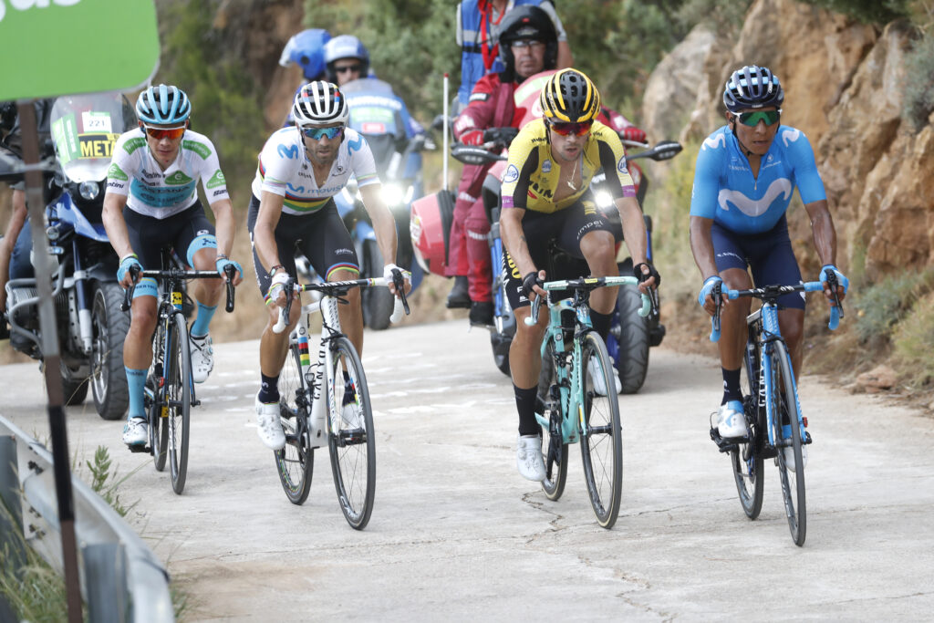 Y en este tipo de porcentajes, más propio de ciclistas araña, no hay margen para el ataque ni para obtener réditos. Es pura supervivencia y no perder la rueda del rival. Y tras una semana de competición el tamiz sigue dejando a los cuatro magníficos y con la pareja del equipo español mejor avenida tras la polémica de Javalambre. Quintana y Valverde sí funcionaron como portadores de la misma casaca. El boyacense aceleraba para quemar las piernas de su paisano y las del esloveno con el murciano aguantando para asestar su puñalada letal en meta. Pero el piñón del 32 -33 en algunas bicis como la del caído navarro- impedía mayores velocidades. Roglic se conformaba con estar ahí y López no queríe el maillot rojo que desprecia al día siguiente para no desgastar a su equipo. Así que entente cordiale habiada cuenta del agreste hábitat hasta la línea de meta donde Valverde, en sí su paraíso, no perdonó en una oportunidad ideal a sus 39 años.