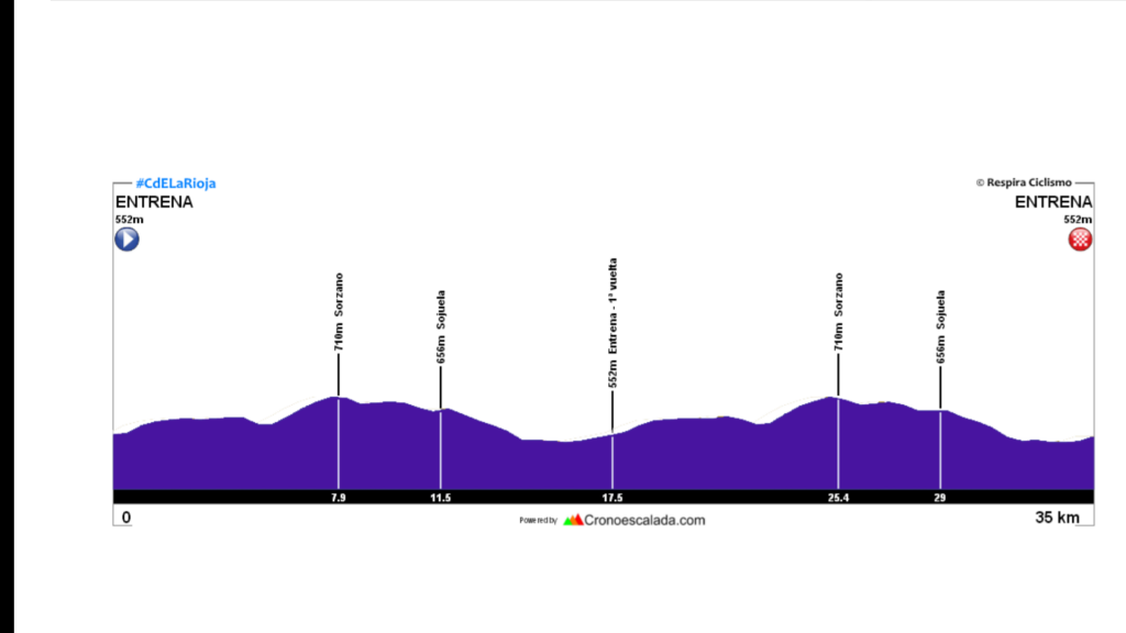 El domingo, a partir de las 11.15 h, Entrena será la sede del VII Trofeo Gobierno de La Rioja, con un trazado de 105 kilómetros. El recorrido será el mismo que en la pasada edición: un circuito que parte de Entrena dirección Sorzano, y vuelve al lugar de origen por Sojuela. Se trata de un trazado de 15,5 kilómetros al que darán 6 vueltas, con el paso por Sorzano y el propio paso por Entrena, como principales dificultades de la jornada.