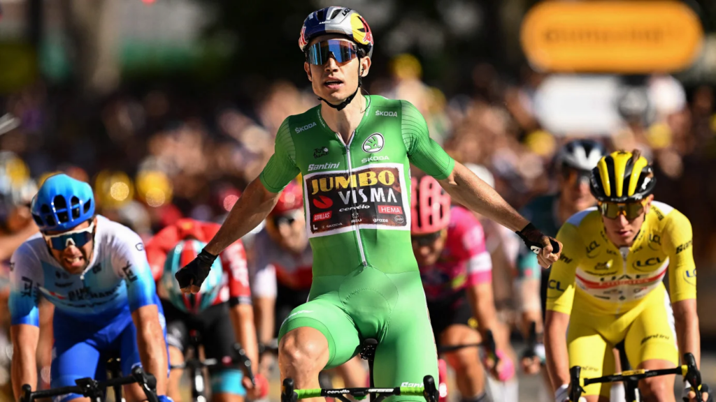 Pero se le hicieron muy largas las rampas hasta llegar a meta. Con el pelotón comandado por UAE se dio caza a la fuga mientras el pelotón iba perdiendo unidades. Un grupo de 35 unidades se iban a jugar la victoria, aunque por todos era conocido que la victoria estaría entre Pogacar y Van Aert. El belga ganó merecidamente tras tener que remontar varias posiciones y superar a Michael Matthews (2º) y Tadej Pogacar (3º) que se quedaron con la miel en los labios. Además, el esloveno consiguió 4 segundos de bonificación por ese tercer puesto en meta. El líder sigue abriendo hueco con sus perseguidores, aventajando a Jonas Vingegaard en 39 segundos.