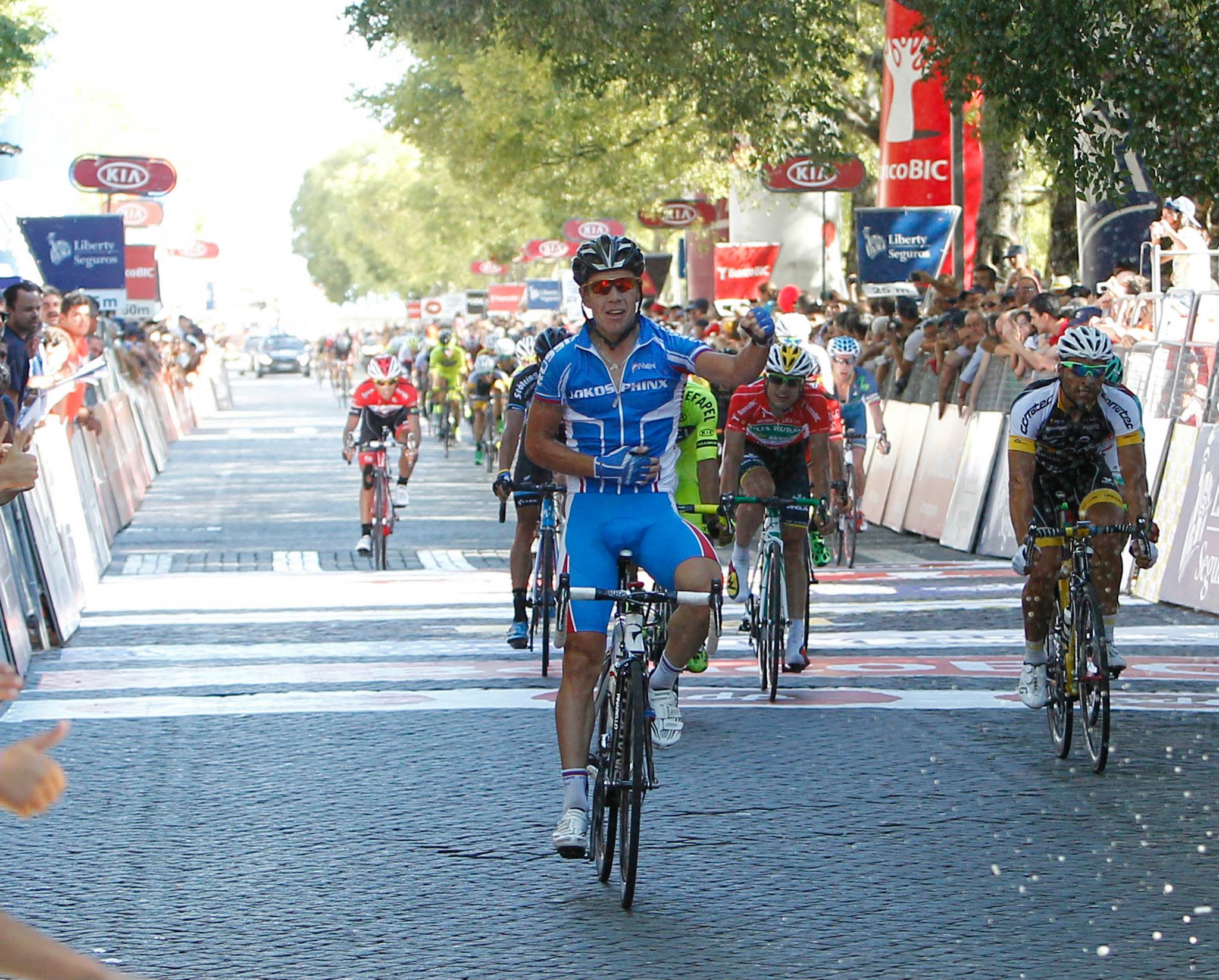 Igor Merino (Burgos-BH) y Sergio Sousa (Efapel) fueron los últimos aventureros en las calles del circuiro urbano final, después de neutralizar la fuga del día en la que se metieron los españoles Alberto Gallego y Raúl García de Mateos.