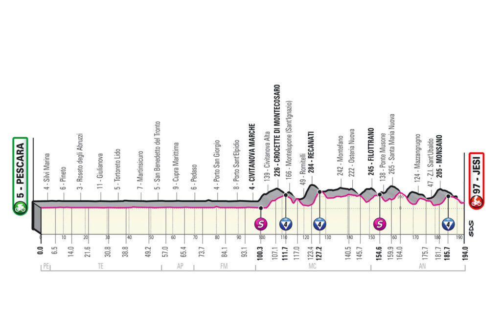 Rosa muy activo en la lucha por los puntos de la montaña se quedó en solitario en cabeza de carrera, después de la caída que sufrió Tesfatsion en el descenso del puerto. El ritmo de Ineos provocó que Rosa fuera alcanzado por el pelotón en las primeras rampas del Blockhaus. Aun así, el italiano consiguió la suficiente cantidad de puntos para arrebatarle el maillot de la montaña a Bouwman.