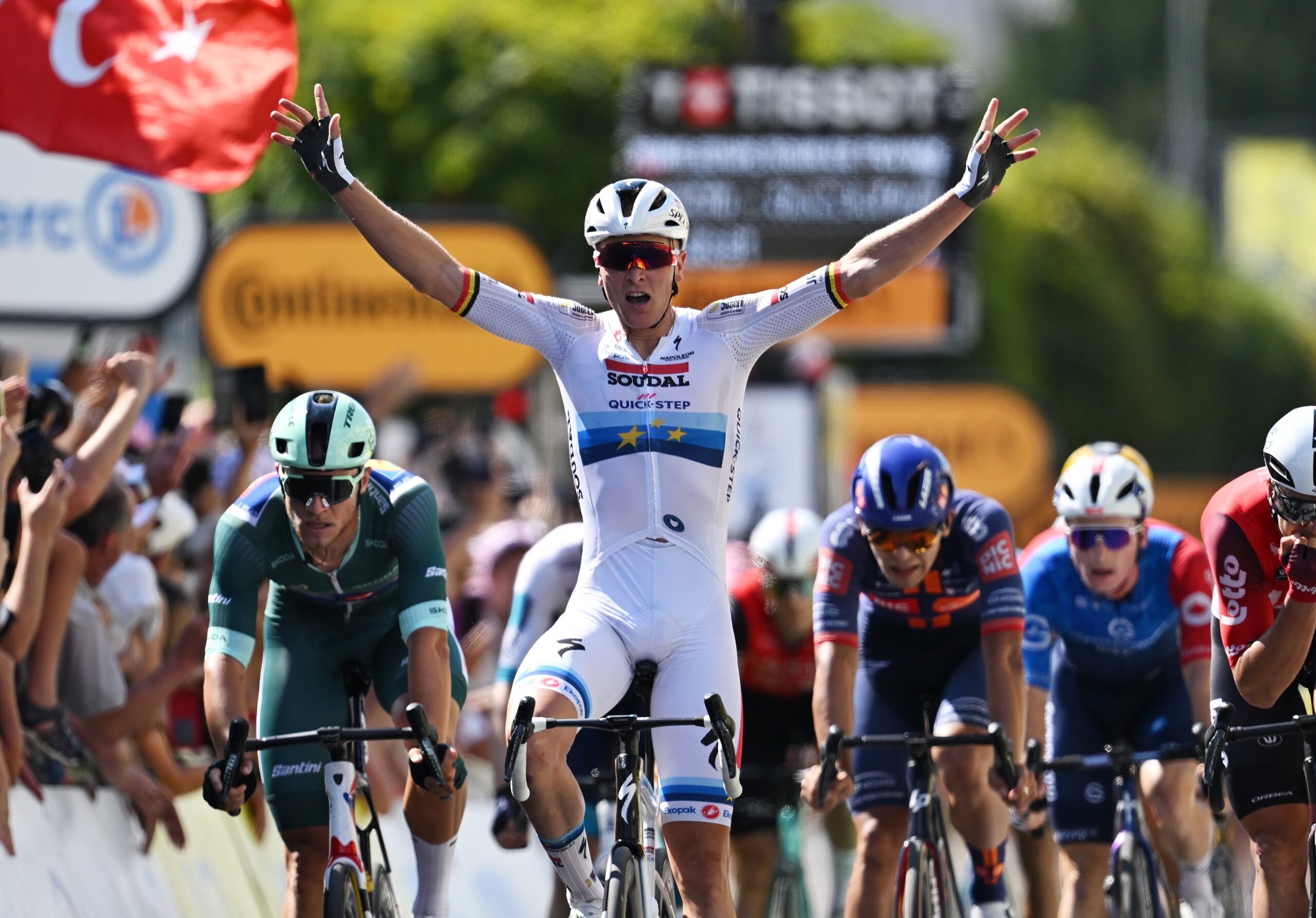 La primera semana del Tour de Francia concluyó con su cuarta volata masiva y con emoción hasta el último kilómetro. No solo por conocer qué velocista se hacía con el triunfo, sino por el valiente esfuerzo de dos ciclistas del Alpecin que desafiaron al pelotón desde la salida y se quedaron a las puertas del éxito. Tim Merlier fue el primer sprinter que repitió victoria en esta edición de la carrera, al superar en la llegada a Châteauroux a Jonathan Milan, vencedor del día previo, y Arnaud De Lie, que parece ir encontrando buenas sensaciones con el paso de los días.