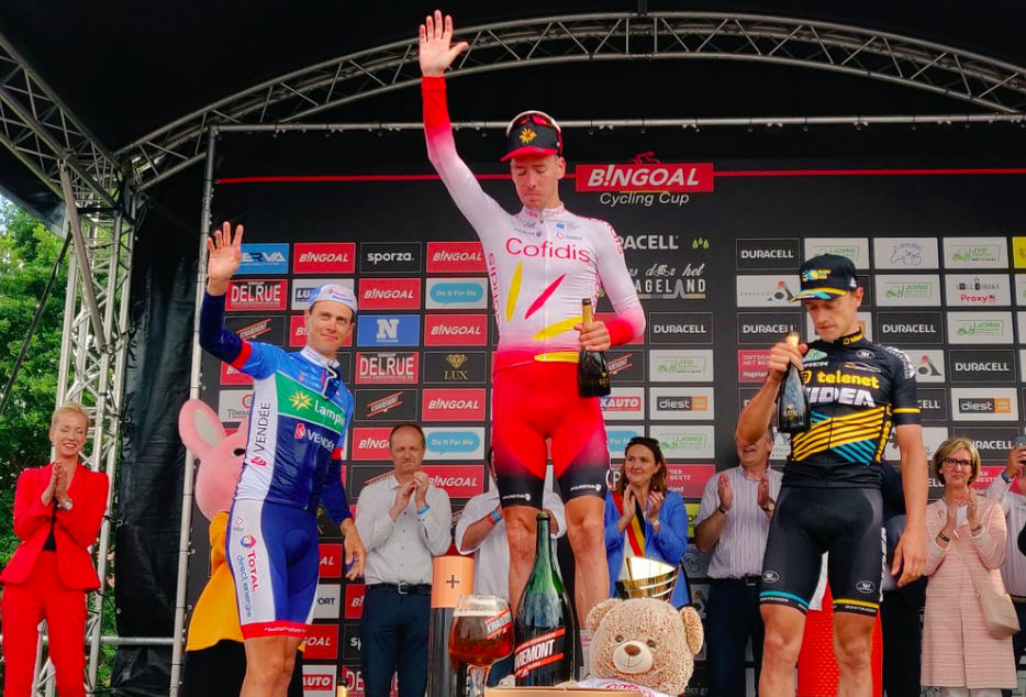 Victoria para el belga de Cofidis Kenneth Vanbilsen al imponerse en solitario en la semiclásica A Través de Hageland (BEL/1.1) con el retorno a una mezcla que incluía pavés y cotas. Vanbilsen fraguó su triunfo desde un grupo escapado de 31 corredores del que pudo fugarse en solitario y ser beneficiado por el escaso entendimiento que hubo por detrás para, más tarde, cruzar la línea de meta paladeando su segunda victoria profesional cinco años después de la lograda en el GP La Marsellesa de 2014.