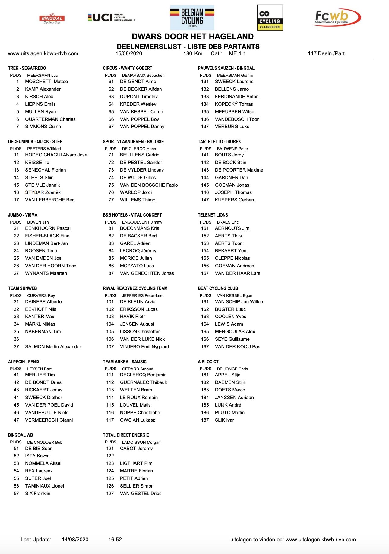 Las dificultades, concentradas en su práctica totalidad hacia el final del trazado, han dibujado una carrera con muchas alternativas, algunos clasicómanos de renombre y cuatro equipos del World Tour. No han dominado los Deceuninck, los Jumbo o los Sunweb, sino los Alpecin-Fenix, que además de Rickaert han metido a Vermeersch en el podio y a Tim Merlier, en la quinta posición.