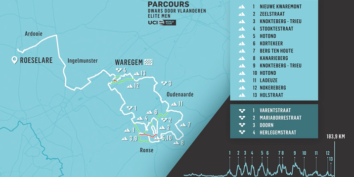 Como es habitual en este tipo de clásicas, entrar en la fuga podía significar para muchos el resistir con los mejores en la parte final. Nils Politt (Bora), Johan Jacobs (Movistar), Kelland O’Brien (BikeExchange), Aaron Verwilst (Sport Vlaanderen) y Mathijs Paasschens (Bingoal) formaron un quinteto del que dos de sus integrantes acabarían en el top-10 de la prueba. Los movimientos en esta carrera de preparación para la Vuelta a Flandes no se hicieron esperar y ya en el Stooktestraat, a más de 90 kilómetros de la conclusión, Van der Poel dio un primer aviso de que había vuelto con sed de victoria. En el Hotond fueron Olivier Le Gac (Groupama) y Jasha Sutterlin (Bahrain) quienes lanzaron su ofensiva.