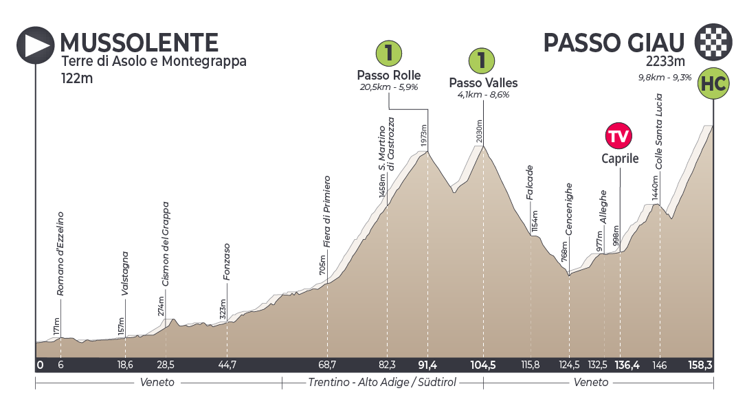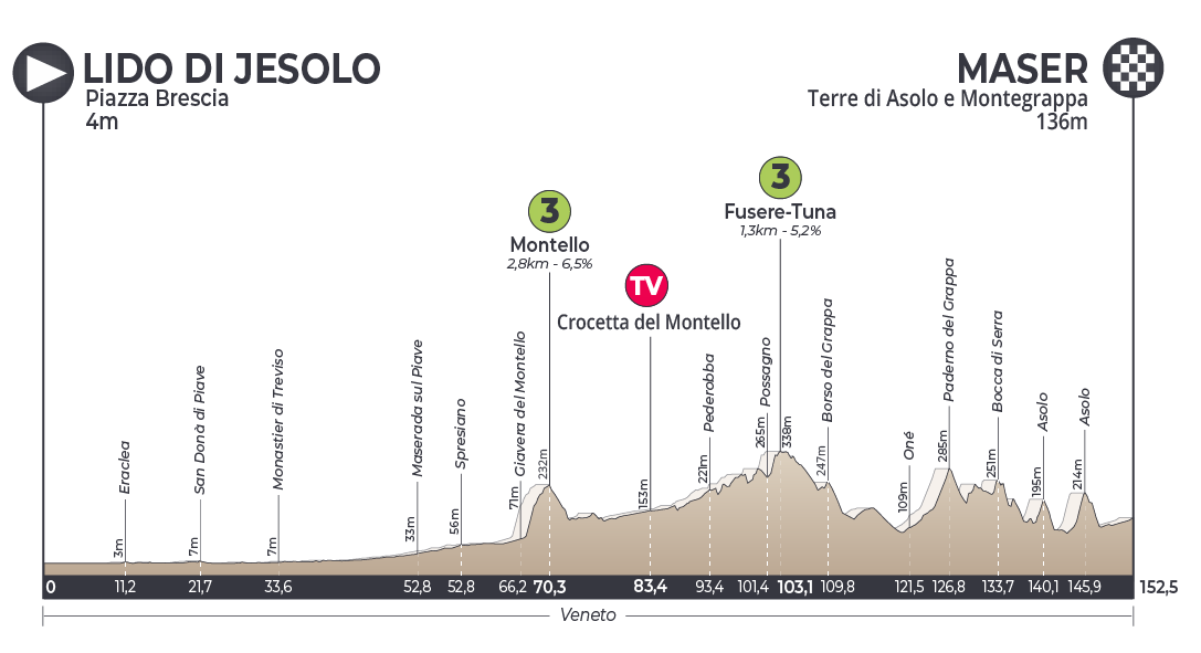 Partirá de la región del Veneto -con una contrarreloj por equipos- y finalizará en Trieste tras recorrer cerca de 700 kilómetros y coronar el Passo Giau, que será final de etapa, en la jornada más exigente.