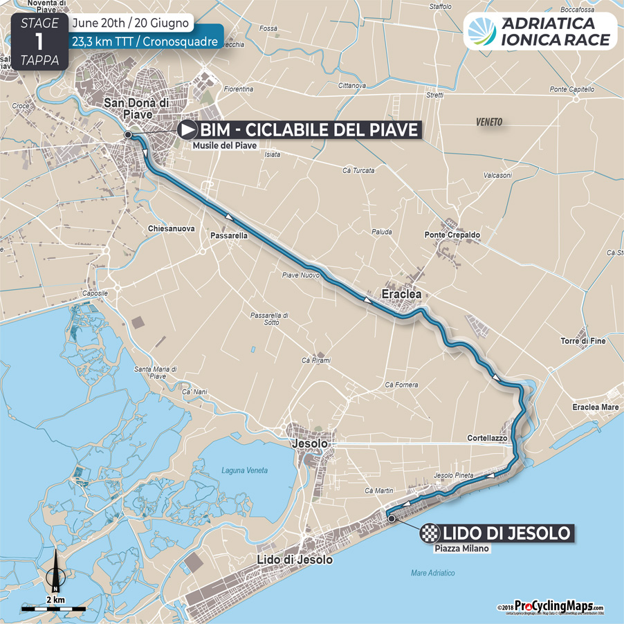 La Adriatica Ionica Race es una carrera -categoría UCI 2.1- de nueva creación cuyo objetivo es recorrer los países bañados por los mares Adriático y Jónico. De momento, para su primera edición, que arranca el miércoles 20 de junio, la prueba constará de cinco etapas, todas por Italia.