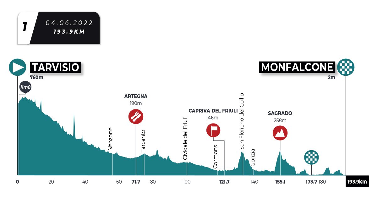 1ª: Sábado 4 junio. Tarvisio-Monfalcone (189 km)