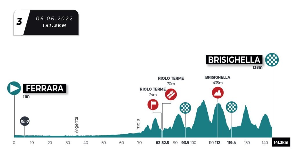 3ª: Lunes 6 junio. Ferrara-Brisighella (139 km)