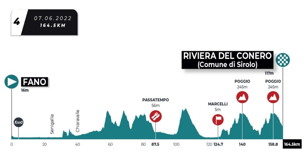 4ª: Martes 7 junio. Fano-Riviera del Conero (165 km)