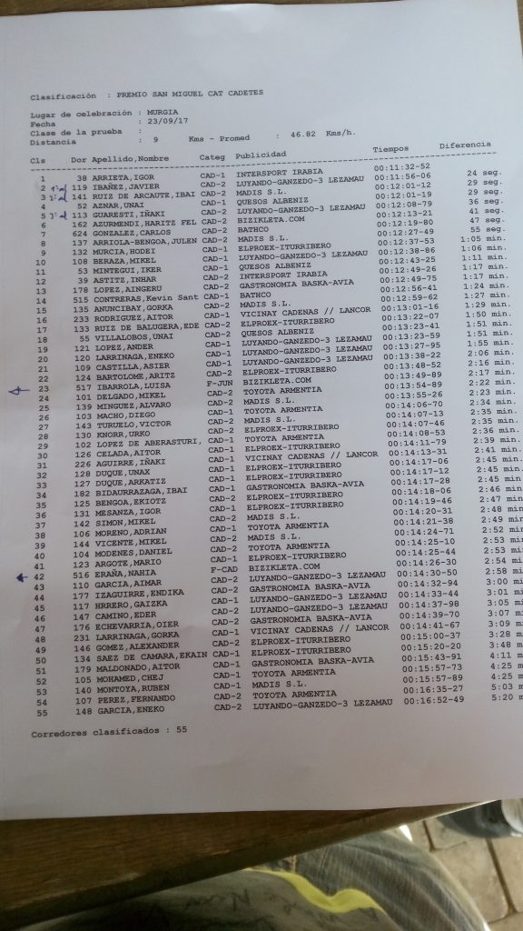 El cadete navarro Igor Arrieta se ha impuesto con solvencia a los alaveses Javier Ibáñez e Ibai Ruiz de Arcaute en el Premio San Miguel contrarreloj disputado en Murgia y valedero como Campeonato de Álava de la especialidad.