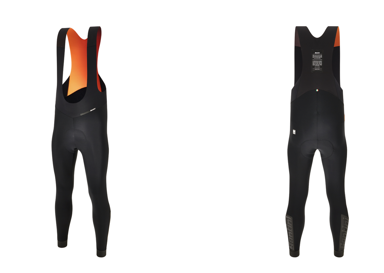 El logo Santini en las pantorrillas te garantiza una perfecta visibilidad cuando hay muy poca luz, para que puedas montar a gusto y olvidarte del frio y de la lluvia.